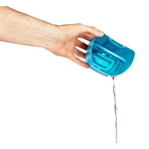 2. DryWalker Flex Drip Catcher: Türkiser Behälter, der das Wasser aus Abzieher und Einwascher zuverlässig auffängt. Eine Rückfangklappe im Tropfenfänger verhindert, dass Wasser aus dem Behälter schwappt. Besonders praktisch: den Behälter können Sie abziehen und ausleeren, ohne den gesamten Köcher ausziehen zu müssen. Durch das transparente Material am Tropfenfänger erkennen Sie auf einen Blick, ob der Behälter ausgeleert werden muss.