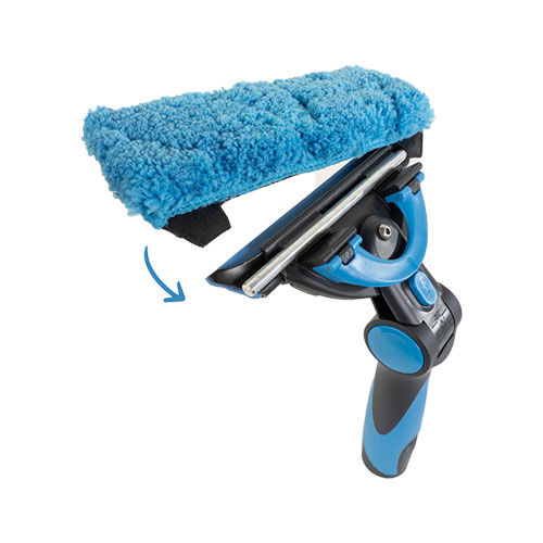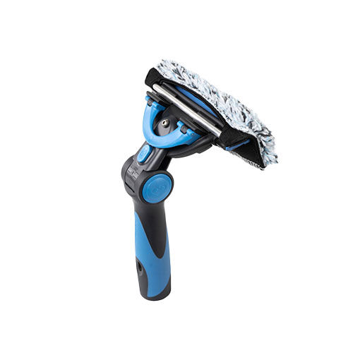 Moerman Excelerator 2.0: Das Profi-Tool für die Glasreinigung  Der Excelerator von Moerman Tools ist bei vielen Glasreinigungs-Profis der Favorit unter den Griffen, weil er präzises und schnelles Reinigen mit der Stange oder Hand ermöglicht. Wir bei Jeikner konnten uns kaum vorstellen, dass die sehr gute Handhabung des Excelerators noch getoppt werden könnte, aber Moerman hat uns mit dem Excelerator 2.0 eines Besseren belehrt! Verbesserter Griff für effektivere Fensterreinigung Der Excelerator 2.0 ist leicht und liegt gut in der Hand. Trotz minimalem Druck auf den Griff lassen sich optimale Reinigungsergebnisse erzielen. Das schont Handgelenke, Arme und Schultern. Die Swivel-Funktion des Excelerators 2.0 ermöglicht geschmeidige Schwenkbewegungen bei der Fensterreinigung. Das Drehgelenk lässt sich in fünf verschiedenen Winkeln feststellen: -20 °, -5 °, + 10 °, + 25 °, + 40 °. Die negativen Winkel erleichtern vor allem das Bearbeiten von Fenster-Unterkanten. Die individuelle Einstellung des Excelerator 2.0 Drehpunktes nehmen Sie selbst vor. Mit einem M3 Inbusschlüssel stellen Sie einfach ein, ob der Excelerator 2.0 leicht oder fest schwenkbar sein soll. Ganz nach Ihren Bedürfnissen! Mit dem neuen Fixierknopf verwandeln Sie den Excelerator 2.0 ganz einfach von einem schwenkbaren in ein fixiertes Profi-Werkzeug für die Glasreinigung. Zusammen mit der Liquidator 2.0-Wischerschiene und dem F*LIQ-Bezug von Moerman wird der Exclerator 2.0 zum praktischen 2-in1-Tool. Der lästige und zeitraubende Wechsel des Werkzeugs wird damit hinfällig! Vorteile extremer Winkelbereich: -20 ° | -5 ° | + 10 ° | + 25 ° | + 40 ° negative Winkel benutzerfreundlicher und sicherer durch neuen Verriegelungsmechanismus verbesserter Verriegelungsknopf, um den Griff von einem schwenkbaren Tool in ein fixiertes Werkzeug zu ändern leichter Griff für ergonomischere Glasreinigung für die Arbeit mit der Hand oder Stange ProdukteigenschaftenFarbe:blau, schwarzMaterial: POM / PP / PA6/ Stahl Gewicht:151 g Maße (L x B) 21,5 x 4 cmHerstellernr.VE:10Weiter praktische Informationen im Anwendungsvideo von Moerman:
