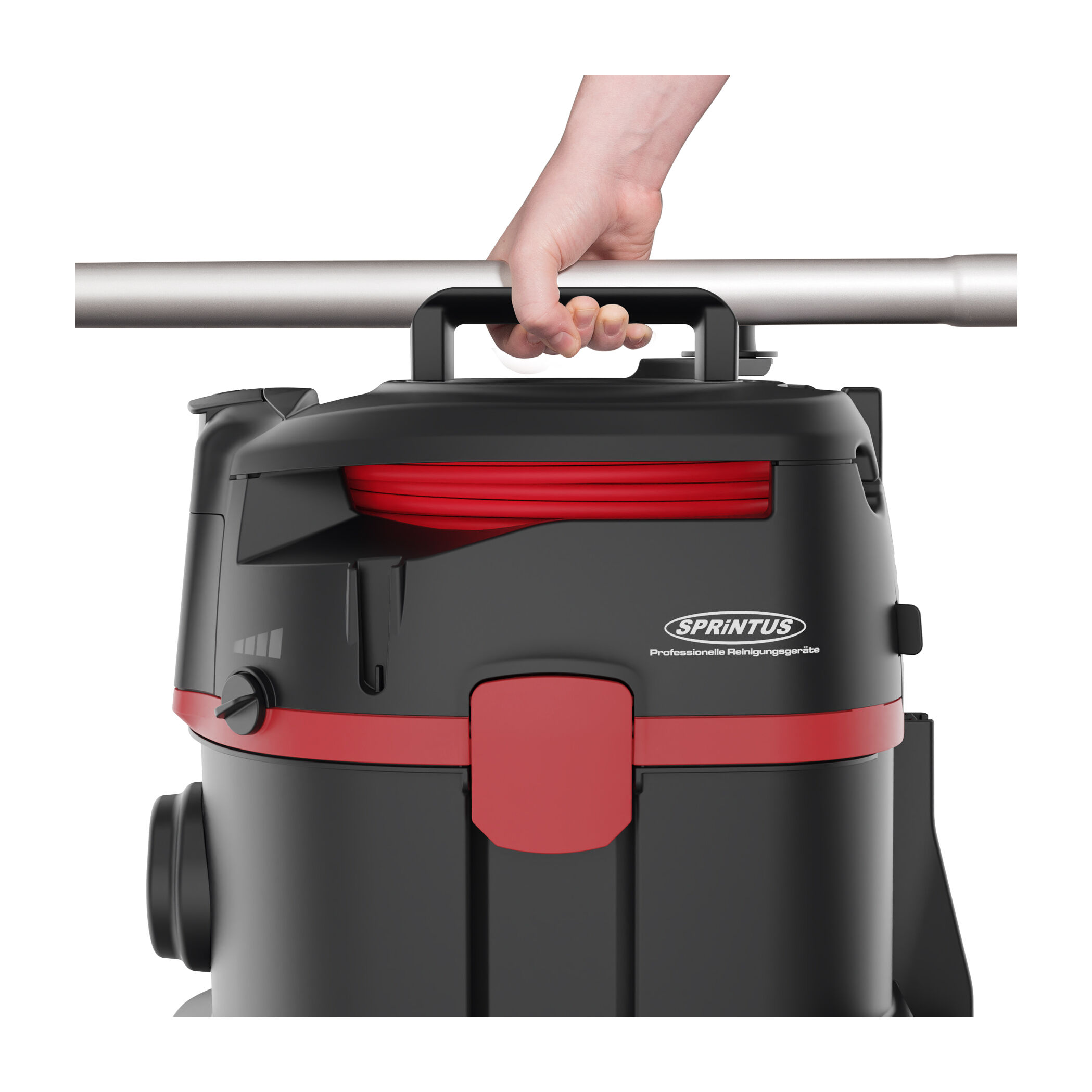 Sprintus ERA PRO Zero Staubsauger für die umweltfreundliche Reinigung Der Trockensauger ERA PRO von Sprintus setzt durch die erstmalige Digitalisierung von gewerblichen Trockensaugern neue Maßstäbe in der professionellen Reinigung. Lieferumfang: inkl. Teleskoprohr, Saugschlauch 2,5 m, Vliesfilterkorb, HEPA13 Vliesfiltertüte, HEPA13 Filterkassette, Fugendüse, kombinierte Polster- / Möbeldüse, Kombidüse 280 mm, Netzkabel 12 m, steckbar, signalrot. Standardzubehör: Teleskopsaugrohr Edelstahl (0,6 - 1,0 m) Saugschlauch komplett, 2,5 m Energy-Kombidüse 280 mm Polster-/Möbeldüse Fugendüse 230 mm Vliesfilterkorb HEPA 13 Filterkassette Netzkabel 12 m, steckbar, signalrot Innovative Funktionen und Vorteile: Bluetooth-Datenübertragung: Synchronisieren von Gerätedaten. Störungs- und Wartungshinweise: Ausgabe über das Display. Sprachauswahl: Deutsch, Englisch, Französisch, Italienisch. Touchdisplay: Mit aktuellem Datum und Uhrzeit. Elektrosaugbürsten-Steckdose: Art.-Nr. 111135. USB-Ladefunktion: Praktisch für mobile Geräte. ECO-Modus: Stufenlos einstellbar, mit Geräuschpegel von 54 dB im 100%-Modus und 49 dB im 50%-Modus. Werkzeugloser Kabelwechsel: Einfach und schnell. HEPA13 Filterkassette: Werkzeuglos entnehmbar. LED-Anzeigen: Blaue Betriebs-LED und rote Füllstandsanzeige-LED. Filtertüten-Reservefach: Cleveres Design für Ersatzfiltertüten. Zubehörsteckplätze und Parkpositionen: 4 Zubehörsteckplätze und 3 Parkpositionen serienmäßig. HEPA13 Vliesfilterkorb: Waschbar für langfristige Nutzung. Laufräder und Lenkrollen: Extra große Räder sorgen für hohe Agilität und Stabilität. Kabelaufwicklung: Integriert mit offenem Design. Elastische Stoßkanten: Rundum elastische Stoßkanten und durchgängige Gleitkufe für leichte Übergänge an Türschwellen. Bluetooth-Datenübertragung: Synchronisieren von Gerätedaten. Störungs- und Wartungshinweise: Ausgabe über das Display. Technische Daten Nennspannung:220 - 240 V / 50 HzLeistung:700 WSchallleistung:49 - 56 dBBehältermaterial:KunststoffBehältervolumen:13 L (brutto)Filtertütenvolumen:9 LLänge Netzkabel:12 mSaugschlauch-Durchmesser:32 mmSaugschlauchlänge:2,5 mSaugrohrdurchmesser:32 mmGewicht:5,7 kgAbmessungen (L x B x H):38 x 28 x 43 cmVE:1