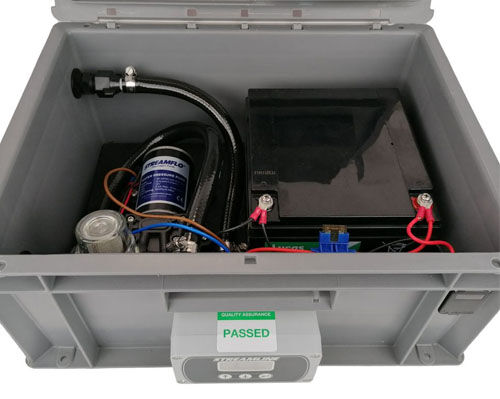 Die Streambox MINI von Streamline ist die ideale Ergänzung zu einem Wassertank ohne integrierte Pumpe. Die 6,9 bar-Pumpe kommt mit Durchfluss-Regler, Lithium-Akku und Ladegerät. Das kompakte Pumpenset ist in einer robusten Kunststoff-Box untergebracht.
