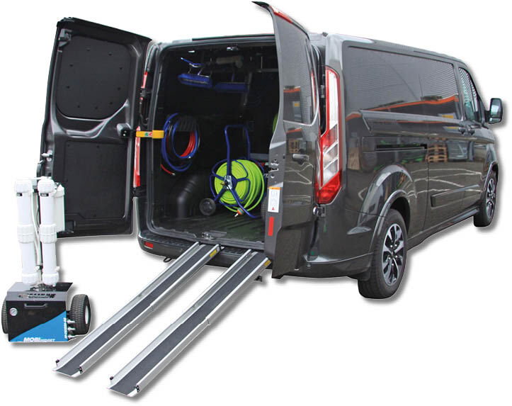 Verwenden Sie die Rampen als Auffahr- und Entladerampe für den Transport von skyVac Reinigungsgeräten, Generatoren, Reinwassersystemen, Rasenmähern usw. in Transportern, Lieferwagen, größeren Autos und Anhängern. Auch als mobile Treppenrampe für Reinigungsmaschinen geeignet.  Perfekt für Handwerker, Reinigungsunternehmen, Hausmeister und Facility Manager.