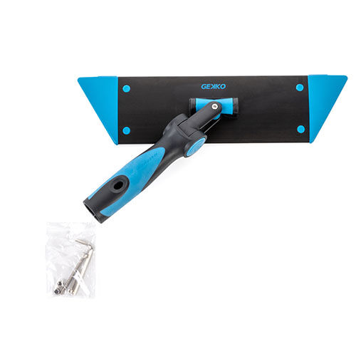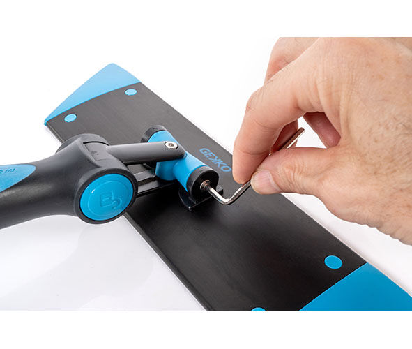 Die Trapezplatte des Gekkos ist so konstruiert, dass Sie Ecken und Kanten gut erreichen. Das Schmutzwasser wird seitlich abgeleitet. Zwei flexible Endkappen sorgen für eine optimale Kraftverteilung. Mit Inbusschlüssel und Sechkantmutter können Sie die die Drehbewegung des Padhalters einfach an Ihre Bedürfnisse anpassen oder fixieren. Ein Ersatz-Set mit Sechskantmutter und Inbusschlüssel ist im Lieferumfang enthalten.