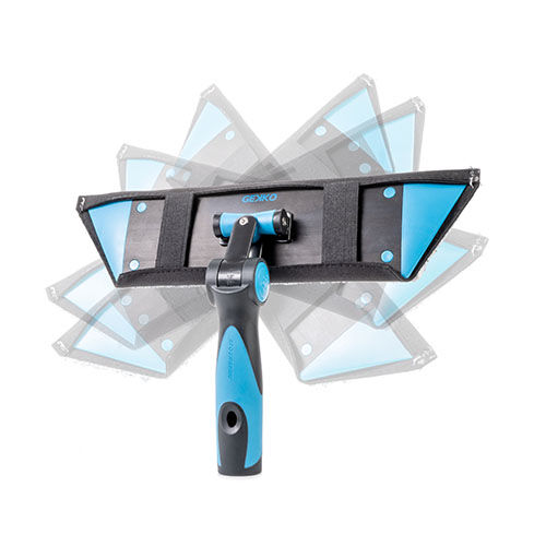 Den trapezförmigen Padhalter mit Stiel können Sie in der Hand nutzen, er passt aber auch auf alle Moerman-Teleskopstangen und -Adapter und findet dort einen sicheren Halt. Somit ist der Moerman Gekko ideal für die Reinigung von niedrigen, hohen und schwer erreichbaren Flächen. Der Halter aus leichtem massiven Aluminium ist um 360° schwenkbar. Dank Winkelgelenk können Sie den Winkel anpassen, wählen Sie zwischen 0, +15°, +30°, +45°,oder +60°.