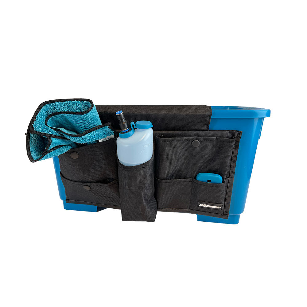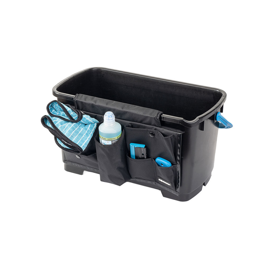 Nur den Eimer schnappen und Werkzeuge zur Hand? Der Organizer für 22 und 24 Liter Eimer von Moerman bietet Stauraum an der Seite des Eimers. Wie praktisch! Seitlich am Eimer angehängt verstauen Sie dort in 6 verschiedenen Fächern Ihre Mikrofasertücher, Fensterreinigungsseife, Schaber, Ersatzklingen und mehr.