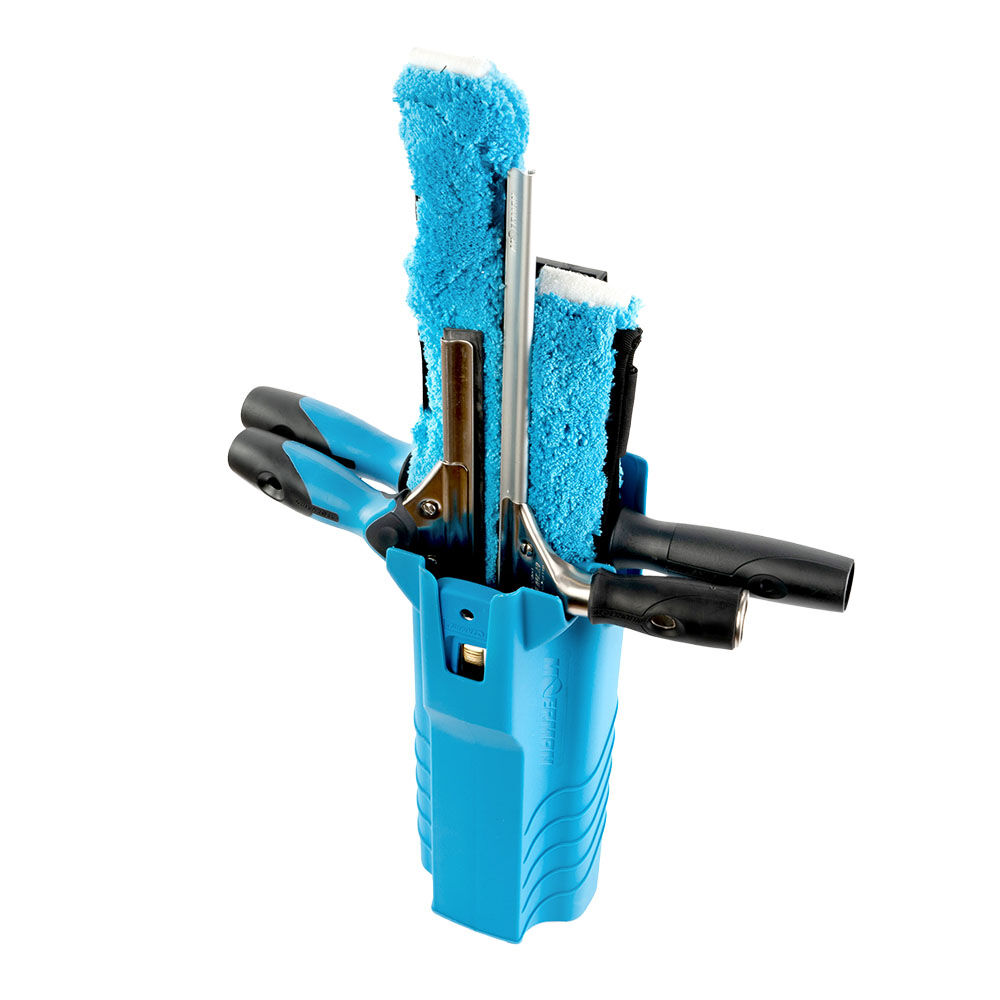 Im optimierten Moerman Köcher, dem Toolholder 2.0 können Sie dank vieler Fächer alle Tools, die Sie für die Glasreinigung benötigen, verstauen und bequem mit sich führen. Die gewölbte Rückseite des Köchers sorgt für Bewegungsfreiheit beim Reinigen, da sich der Köcher so angenehm an das Bein anpasst.