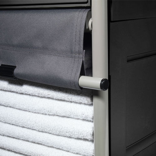 • Flexibles Rollo zum Schutz vor unerwünschtem Zugriff: Das integrierte flexible Rollo schützt den Inhalt des Wagens vor unerwünschtem Zugriff und sorgt gleichzeitig für ein aufgeräumtes und professionelles Erscheinungsbild.