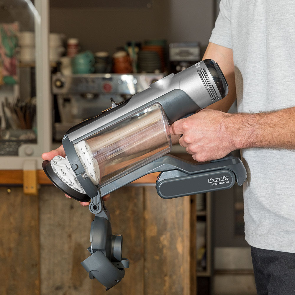 Numatic Henry Quick Stabstaubsauger  - die maximale Performance für professionelles SpotcleaningDie Henry Quick Aktion ist bis zum 31.12.2025 gültig. Das Angebot gilt nur für den Numatic Henry Quick mit 1 Akku (JNUHQ1)! Der Numatic Henry Quick Akku-Staubsauger verfügt über ein hocheffizientes Pod-System, welches den Staub in einem Filter-Pod einschließt und eine hygienische und staubfreie Entleerung ermöglicht. Das Fassungsvermögen des Filter-Pods liegt bei 1 Liter und ist größer im Vergleich zu vielen vergleichbaren Akku-Staubsaugern. Die im Lieferumfang enthaltenen sechs Pods sind aus bis zu 60 % recyceltem Material hergestellt und können mit einem einfachen Klick berührungslos entsorgt werden. Der austauschbare 25,2-V-Lithium-Ionen-Akku treibt einen 300 Watt Digitalmotor an und ermöglicht unterbrechungsfreies Arbeiten für bis zu 60 Minuten Flexibilität und Benutzerfreundlichkeit stehen durch die leichte und kompakte Bauweise (3,2 kg) und der ergonomischen, abnehmbaren Handgriffverlängerung im Fokus. Dank der mitgelieferten Wandhalterung mit praktischer Aufbewahrungsmöglichkeit für Zubehör kann der Henry Quick einfach verstaut und gleichzeitig geladen werden. Der Numatic Henry Quick Akkusauger ist in den Farben rot oder grau erhältlich. Wählen Sie zwischen den Ausführungen mit 1 Akku oder 2 Akkus aus - wie es für Ihre Reinigungsbedürfnisse am besten passt! Vorteile staubfreie Entleerung: Dank des innovativen und hoch effizienten Pod-Systems bietet der Numatic Quick eine saubere und berührungslose Entleerung hohe Kapazität maximale Perfomance: Sofort einsatzbereit mit der elektrischen Turbodüse für eine professionelle Teppich- und Hartbodenreinigung kabellose Freiheit 120 Minuten Laufzeit: Extra lange Laufzeit mit bis zu 60 Minuten pro Akku - im Lieferumfang ist ein Akku enthalten leicht und praktisch: Leicht, kompakt und ergonomisch für maximale Benutzerfreundlichkeit und flexiblen Einsatz ergonomischer Griff: Abnehmbare Handgriffverlängerung für den besten Komfort bei längerem Einsatz gründliche Reinigung: Fugendüse und 2-in-1 Kombiaufsatz für eine gründliche Reinigung auf hohem Niveau einfache Aufbewahrung: Dank Wandhalterung mit integrierter Zubehöraufbewahrung lässt sich der Numatic Quick einfach verstauen und gleichzeitig laden Lieferumfang 6 x Filter-Pods elektrische Turbodüse 2-in-1 Kombi-Aufsatz Fugendüse abnehmbare Handgriffverlängerung Wandhalterung mit Zubehöraufbewahrung 25,2 V-Lithium-Ionen-Akku Ladegerät zu Lithium-Akku vom Henry/ Numatic Quick Warum Pods? Staubfreies Entleeren: Saubere und hygienische Entsorgung. Einfaches und berührungsloses Entleeren mit einem Klick. Hohe Kapazität: Dank des großen 1 Liter Fassungsvermögens muss der Numatic Quick seltener geleert werden - für ein längeres unterbrechungsfreies Arbeiten. Maximale Performance: Der Luftstrom verdichtet den Schmutz, sodass mehr Staub aufgenommen werden kann. Recyceltes Material: Jeder Pod ist aus bis zu 60 % recyceltem Material hergestellt. Und da der CO2-Ausgleich verdoppelt wurde, sind die Pods sogar klimapositiv. Technischen DatenErhältliche Farben:rot, grauNennspannung:25,2 VMotor:300 WLaufzeit:bis zu 60 Min. pro AkkuKapazität:1 LGewicht:3,2 kgAbsaugbreite:270 mmLuftfördermenge:17 L/Sek.Unterdruck:1900 mmWSLadezeit:2,5 Std.Abmessungen (L x B x H):270 x 240  x 1220 mmVE:1Hier geht es zum Numatic Herstellervideo mit den Henry Quick in Aktion: