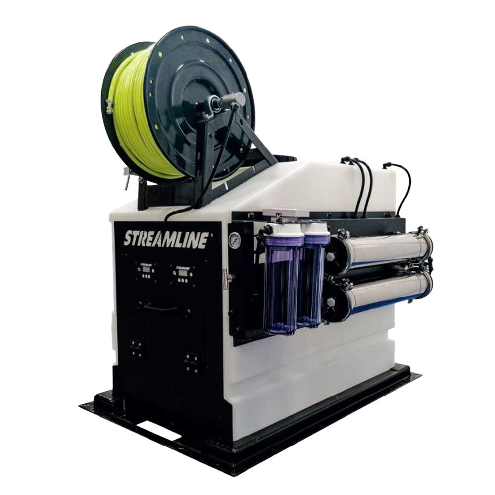 Streamline COMBI 700 Liter Tanksystem | Reinwasser Einbautank Das Streamline COMBI 700 Einbautanksystem ist mit Vorfiltern und Doppelmembran für die Reinwasserproduktion ausgestattet. Sie produzieren 0 ppm Reinwasser für die professionelle Glas- und Fassadenreinigung! Der COMBI 700 Wassertank ist auf einem Stahlrahmen montiert, seitlich sind die Filter angebracht, Steuerung und Pumpen sind für den Anwender gut zu erreichen. Die zwei festinstallierten Schlauchaufroller inklusive jeweils 100 Meter Schlauch befinden sich platzsparend am Kopf des Systems. Vorteile COMBI 700 Einbautanksystem Glasreinigung 700-Liter-Tank Reinwasserproduktion mit 0 ppm für 2 Anwender kompakter Aufbau für optimale Raumnutzung im Fahrzeug leichte Wartung und Pflege perfekt für große Aufträge in der Reinwasser Glas- und Fassadenreinigung Lieferumfang Einbautanksystem COMBI 700: 700 Liter Tank mit Stahlrahmen 2 x Vorfilter (Karbon & Sediment) 2 x Umkehrosmose-Filterystem mit Spülhahn 2 x 100 m Schlauchaufroller wiederaufladbare Lithium-Ionen-Batterien 2 Pumpen und digitale V16-Steuergeräte Inline-Doppel-TDS-Meter Ersatzzubehör: Filterplus Membrane 21″  Filterplus Karbon Block 10″ Filterplus Sediment Filter 10″ Technische Daten Tankvolumen: 700 Liter Maße (L x H x T): 1746 x 1250 x 1090 mm Durchflussgeschwindigkeit: 4,5 L/ Min. Pumpe: 6,89 bar VE: 1