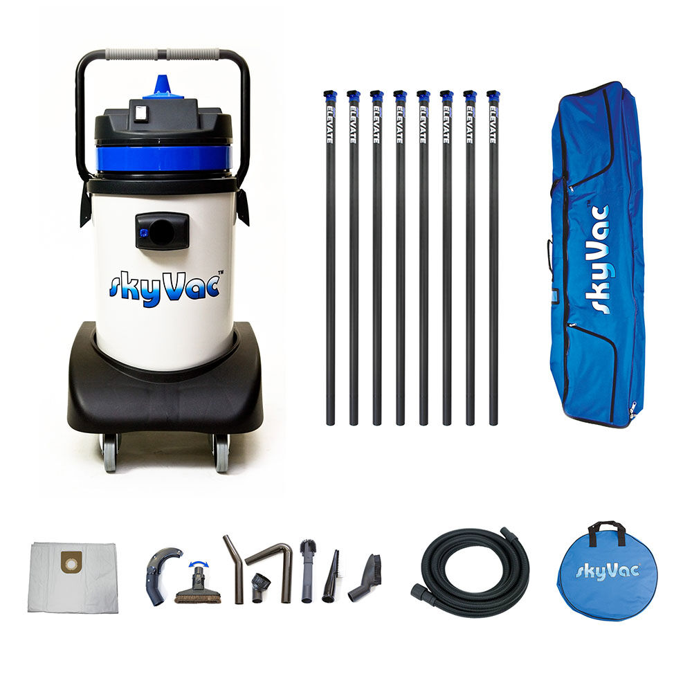 skyVac Saugstangen-Set für den industriellen, gewerblichen oder häuslichen Gebrauch Ideal für Reinigungsarbeiten im Innenbereich in bis zu 12 Meter Höhe. Hauptmerkmale passt auf jeden herkömmlichen Wassersauger einzigartiger Luftstrom für eine schnelle Schmutzabsaugung Rohrset auch kompatibel mit allen herkömmlichen Wassersaugern erhältlich in 3 unterschiedlichen Längen: 6 m / 9 m / 12 m Inhalt eines Standardsets Karbonstangen, je 1,5 Meter lang 8 verschiedene Aufsatzwerkzeuge bzw. Bürstenenden Tragetasche Flexi- Schlauchmanschette 44 mm im Durchmesser Produkteigenschaften TeleskopstangenMaterial:KarbonfaserDurchmesser:44 mmGewicht:305 gLänge:1,5 m