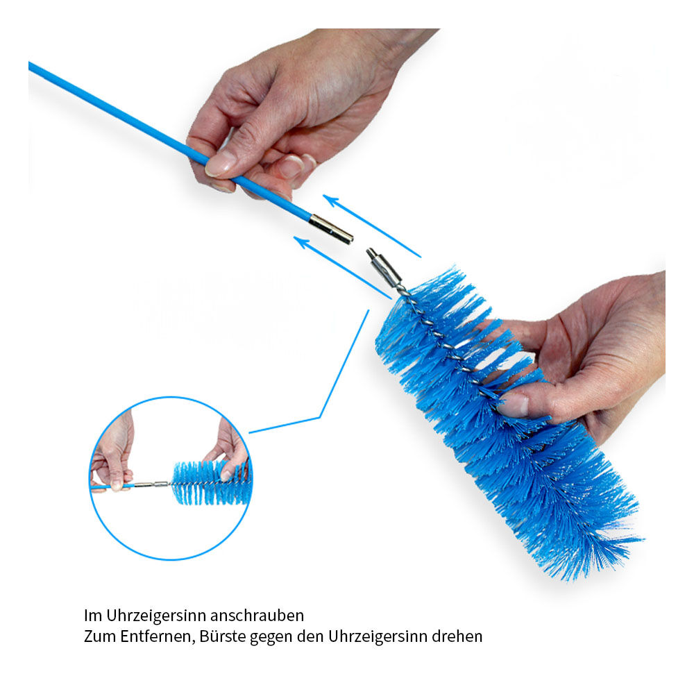Nach der Dachrinnenreinigung: Reinigen Sie Ihre skyVac Saugstangen mit der skyVac Reinigungsbürste. Nehmen Sie einfach die Stange auseinander und reinigen Sie die einzelnen Elemente mit der skyVac Bürste. Denken Sie daran, zuvor klares Wasser durch die Stangen aufzusaugen. Die Bürste entfernt dann den Schmutz, der dabei hängen geblieben ist. So garantieren Sie jederzeit einsatzbereites Equipment.