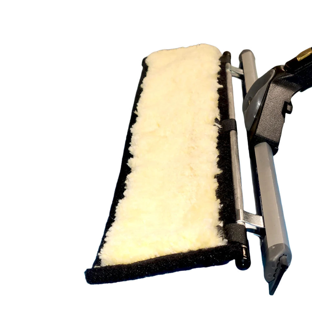 Sie kombinieren das Cobra Flipper Kit mit Ihrer Sörbo Cobra Schiene. Das Einwasch-Pad wird auf die Stange geschoben und an den Enden mit den Vinyl-Kappen verschlossen.  Dann wird die Stange mit dem Pad ganz einfach mit den Fast Release Clips an die Schiene geklippt. Nun können Sie nach dem Einwaschen mit Schwung das Pad nach hinten flippen und den Abzieher nutzen. 2 Arbeitsschritte mit einem Werkzeug ohne Unterbrechen zu müssen!