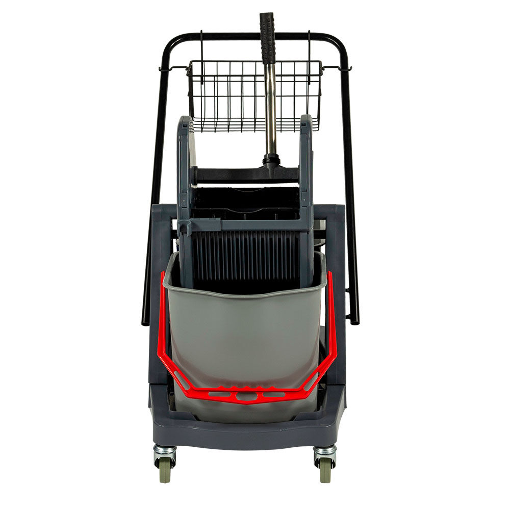• zwei farblich getrennte Eimer und robuste Doppelbacken-Mopp-Presse