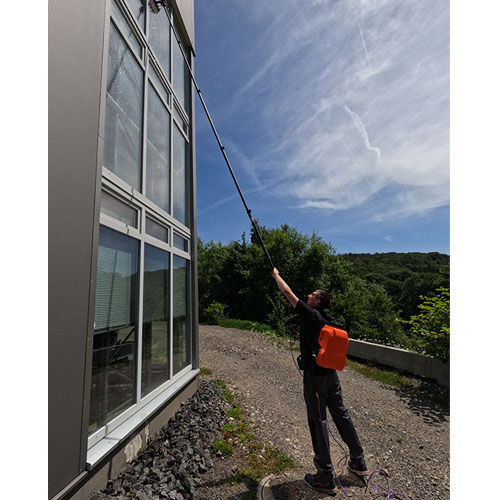 Die Kombination des STOCKER Rucksack-Drucksprüher ERGO und der STREAMLINE OVA8 Teleskopstange ermöglicht Glasreinigung mit Reinwasser überall, auch auf unwegsamen Geländen und schwer erreichbaren Einsatzorten. Befüllen Sie einfach den STOCKER ERGO mit Reinwasser aus Ihrem Tanksystem oder Ihrer Osmoseanlage und arbeiten Sie mit der wasserführenden Mini-OVA 8-Teleskopstange in 2,4 Metern Höhe! Ohne Kabel, ohne Schläuche, ohne Leiter!