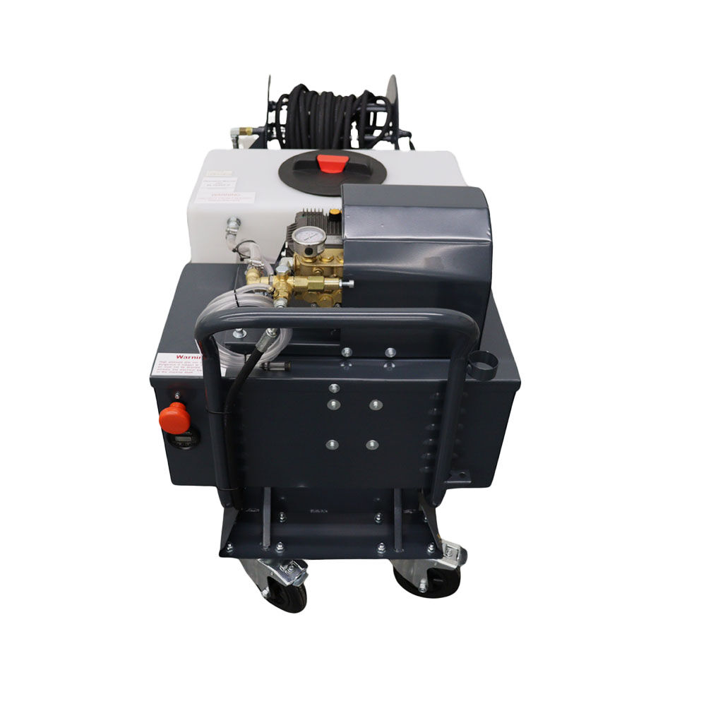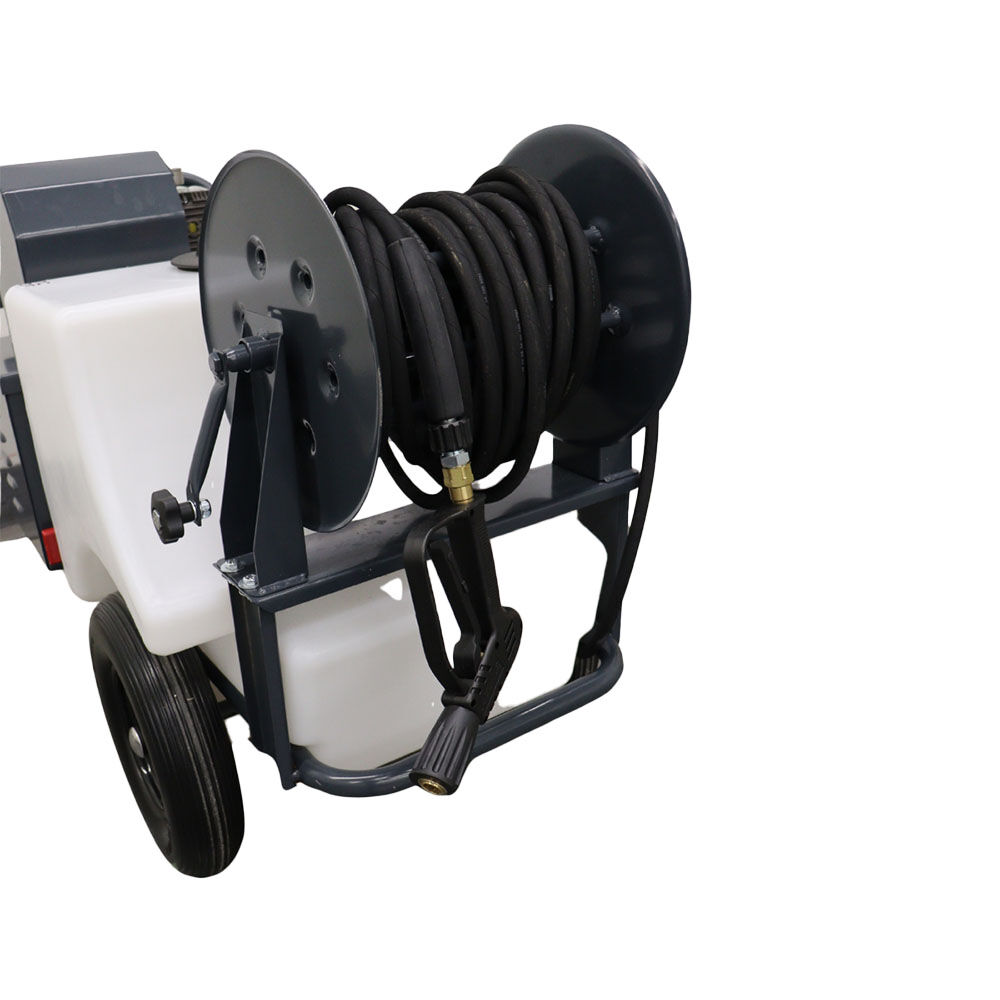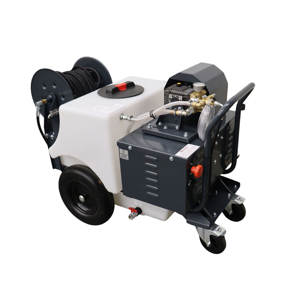 Dieser emissions- und schadstofffreie mobile Hochdruckreiniger wird von zwei 100-Ampere Lithium-Ionen-Akkus gespeist, die einen 24-V-Gleichstrom-Elektromotor antreiben. Dadurch erreicht er eine Leistung von mehr als 80 bar bei einem Wasserdurchfluss von 13 Litern pro Minute.