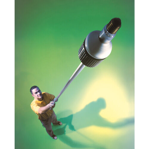Glühbirnenpflücker von Unger, ermöglicht den Austausch von Glühbirnen mit Teleskopstangen Hochhängende Glühbirnen ohne Leiter wechseln – das ermöglicht der Glühbirnen-Pflücker von Unger in Kombination mit einer entsprechend langen Teleskopstange. Den Pflücker können Sie einfach auf Ihre Unger Optiloc-Teleskopstange aufstecken. Runde Glühbirnen werden von den gummierten Federstahl-Fingern des Pflückaufsatzes gegriffen und lassen sich anschließend mit der Teleskopstange herausdrehen.  Vorteile mehr Sicherheit: runde Glühbirnen sicher vom Boden aus wechseln Zeitersparnis: schneller als mit Leiter Federstahl-Finger mit Gummi überzogen perfektes Zubehör für Faciltiy Manager und Hausmeister Produkteigenschaften für runde Glühbirnen passend für Unger OptiLoc-Teleskopstangen, 2-teilig und 3-teilig VE : 5