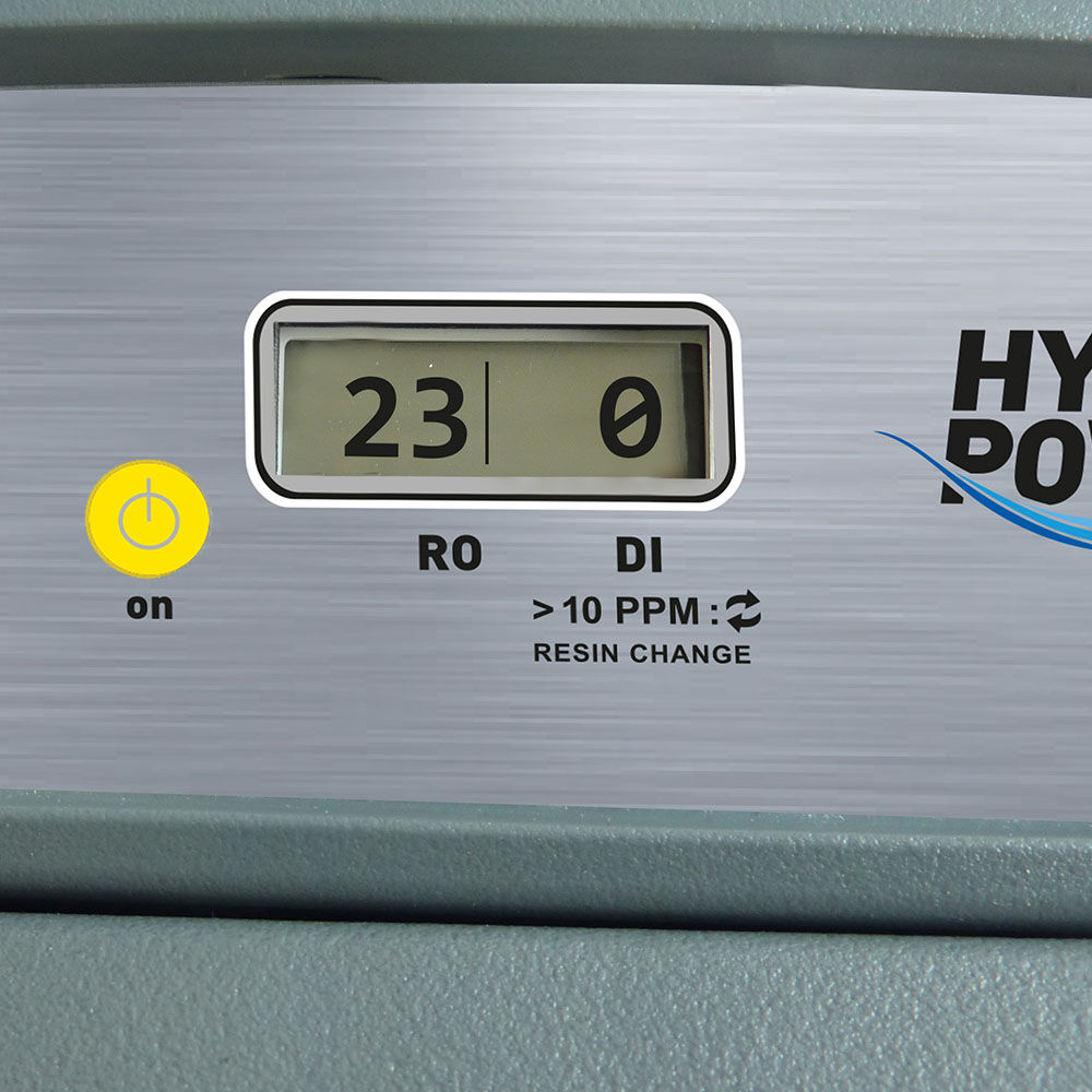 Der HydroPower RO M entmineralisiert das Wasser in einem 3-stufigen Prozess. Der Kombi-Vorfilter entfernt Feinpartikel und Chlor. Die Hochleistungs-Doppelmembran filtert bis zu 98 % der Mineralien heraus. In der dritten Stufe werden die verbliebenen Mineralien durch ein Ionenaustauschharz gebunden.
