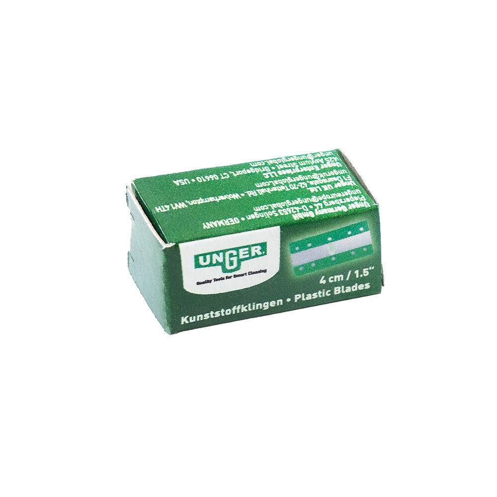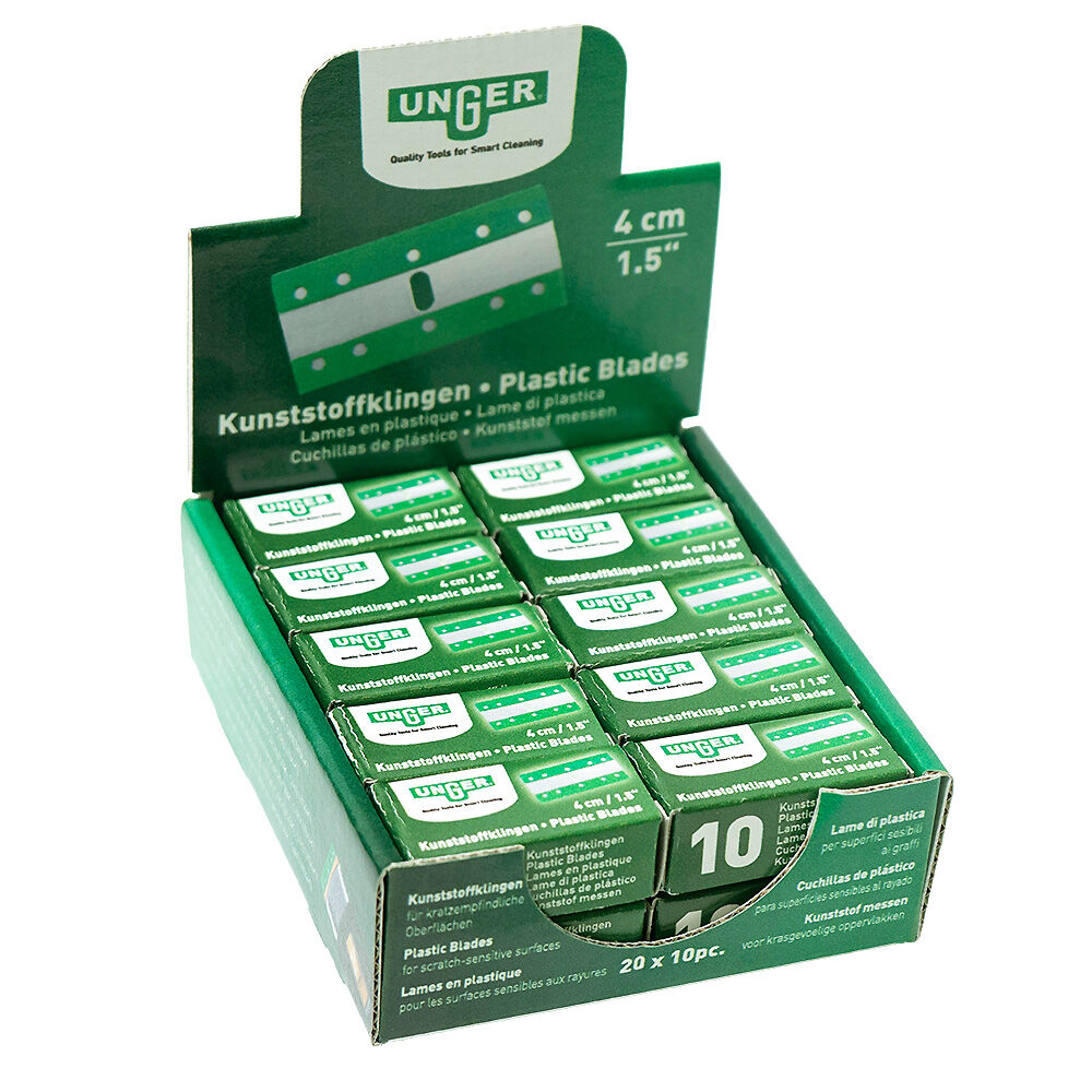 Die 4 cm Kunststoffklinge von Unger ist ideal für den Unger ErgoTec Sicherheitsschaber. Mit dieser Kunststoffklinge können Sie perfekt enge Bereiche von Verschmutzungen entfernen. Sie ist ebenfalls ideal geeignet für die Detailreinigung. Hartnäckige Rückstände wie Aufkleber, Kaugummi, Klebereste oder Farbspritzer werden präzise entfernt. In Gegensatz zu Stahlklingen besteht bei der Kunststoffklinge kein Kratzrisiko. Dank der praktischen Packung mit 10 Kunststoffklingen sind Sie bestens bevorratet. Der Klingenwechsel ist schnell und einfach erledigt. Beim Sicherheitsschaber sorgt der Sicherheits-Einzug für ein kontrolliertes Handling.