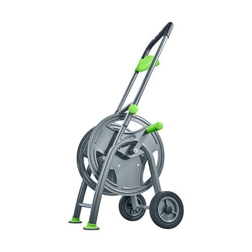 • Praktische Halterung für Geräte: Halterung für Gartengeräte direkt am Schlauchwagen.