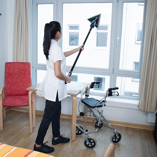 JEIKNER Profi-Tipp: Wenn Sie mit dem Unger Stingray-System reinigen, erreichen Sie auch hochgelegene Bereiche ohne Leiter – das trägt zu einer besseren Arbeitssicherheit bei. Aus diesem Grund kann der Kauf eines Unger Stingray-Systems von der BG BAU als Arbeitsschutzprämie gefördert werden. Weitere Informationen finden Sie auf der Webseite der BG BAU.
