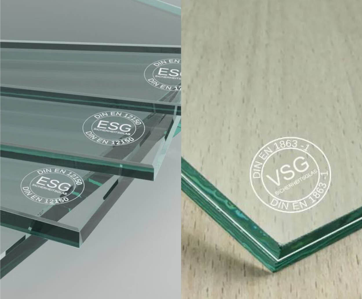 ESG erkennen Sie anhand einer Markierung im Glas. Sie finden diese vorschriftsmäßig an jedem Glas in einer der Ecken. Allgemein sind Glastüren oder -tische sowie andere Möbel, Bushaltestellen, Dusch- oder Trennwände und Brüstungselemente aus ESG gefertigt.