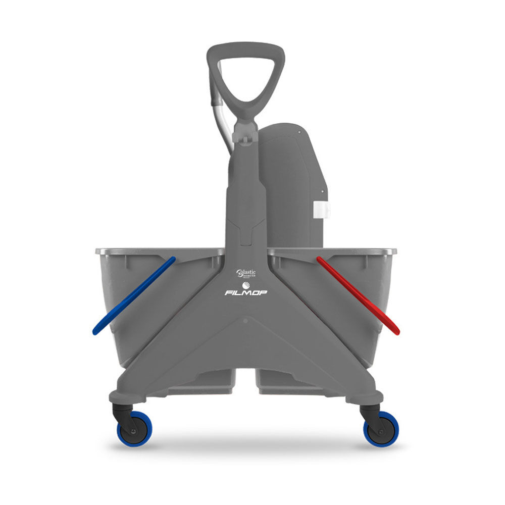 Dieser Doppelfahrwagen ist mit zwei Eimern à 15 Liter Fassungsvermögen ausgestattet, welche sich einfach entnehmen und aufsetzen lassen. Mehrere Fahrgestelle des Reinigungswagens können übereinander gestapelt werden und lassen sich somit platzsparend aufbewahren und transportieren.