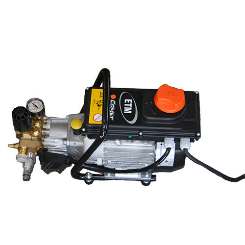 Comet Blue Series Hochdruckreiniger ETM 150X Vorteile leicht zu transportieren dank praktischem Top-Griff und Vibrationsschutz 2-poliger Induktionsmotor (2800 U/Min) eingebautes professionelles Entladeventil mit Auswerfer Total Stop System Drehschalter und Motorwärmeschutz komplett mit 10 m Schlauch und Lanze ohne Tragrahmen Lieferumfang: 1 x Hochdruckreiniger ETM150X 1 x GC 201 Pistole mit Schutz 1 x Lanze mit verstellbarem Strahl + Düse 1 x Hochdruckschlauch, 10 m 1 x Benutzerhandbuch Technische Daten Motor:3,0 HP / 2,2 kWTrockengewicht:25 kgAbmessungen (L x B x H):26 x 47 x 37 cmSpannung:240 VDruck:150 barLeistung:2900 WStromversorgung:kabelgebundenLänge der Leitung:10 mMaterial:Kunststoff, Metall, MessingDurchfluss:10 L/Min.VE:1