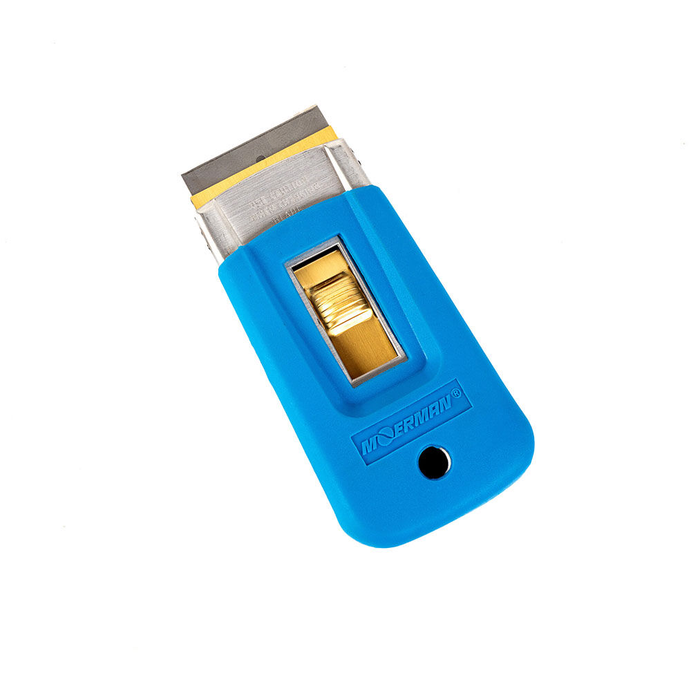 Moerman Sicherheitsschaber – handlicher Glasschaber für Profis Kompakter Glasschaber der Profi-Marke Moerman mit gummierter Hülle für guten Grip. Die Klinge lässt sich sicher einschieben, so dass sie diesen 4 cm breiten Schaber sicher in der Hosentasche mitführen können.  Bestellen sie hier den Moerman Sicherheitsschaber inklusive Klingen oder die passenden Ersatzklingen. Vorteile besonderer Sicherheits-Verriegelungsmechanismus ergonomische Gummi-Ummantelung komfortable Größe immer einsatzbereit einfacher Klingenwechsel Produkteigenschaften Sicherheitsschaber Maße (L x B): 10 x 5 cm Material Edelstahl, TPE-Überzug Farbe. blau Gewicht: 0,064 kg VE: 20 Stk Produkteigenschaften Ersatzklingen Breite: 4 cm Material: Edelstahl Farbe. grau VE Pack: 5 Stk VE Karton: 20 Pack