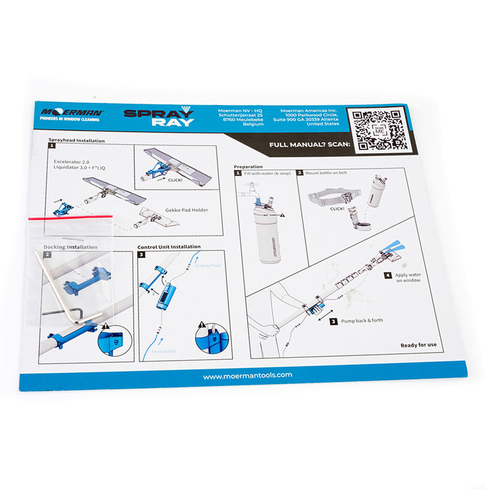 Zusätzlich können Sie weiteres Zubehör für das Moerman Spray-Ray System bestellen, einschließlich der Spray-Ray Flasche, des Spray-Ray Docking und des Spray-Ray Kopfes.