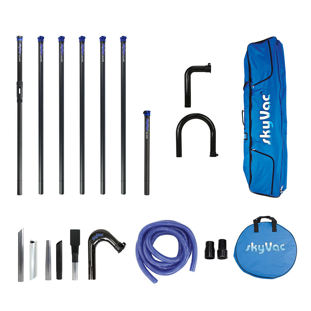 skyVac Saugstangen-Set für den industriellen, gewerblichen oder häuslichen Gebrauch Ideal für Reinigungsarbeiten im Innenbereich in bis zu 12 Meter Höhe. Hauptmerkmale passt auf jeden herkömmlichen Wassersauger einzigartiger Luftstrom für eine schnelle Schmutzabsaugung Rohrset auch kompatibel mit allen herkömmlichen Wassersaugern erhältlich in 3 unterschiedlichen Längen: 6 m / 9 m / 12 m Inhalt eines Standardsets Karbonstangen, je 1,5 Meter lang 8 verschiedene Aufsatzwerkzeuge bzw. Bürstenenden Tragetasche Flexi- Schlauchmanschette 44 mm im Durchmesser Produkteigenschaften TeleskopstangenMaterial:KarbonfaserDurchmesser:44 mmGewicht:305 gLänge:1,5 m