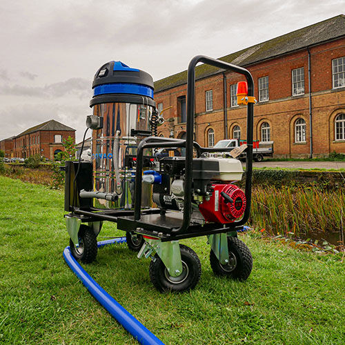 Spinaclean hat einen neuen Wassersauger mit Pumpe entwickelt: der skyVac Floodvac ist ein mobiles Wasserabsaugsystem mit zwei Pumpen zur Unterstützung der Hochwasser- und Wassersanierungsbranche. Sie saugen ohne Unterbrechung Wasser auf und pumpen es ab. Floodvac ist so konzipiert, dass er sowohl Tiefenwasser bis zu 5 Meter als auch Seitenwasser absaugen kann. Dank des integrierten Honda GX200-Motors arbeitet das System unabhängig. Sie brauchen keinen Anschluss an das Stromnetz!