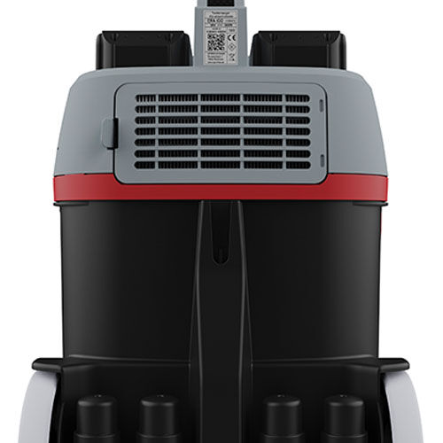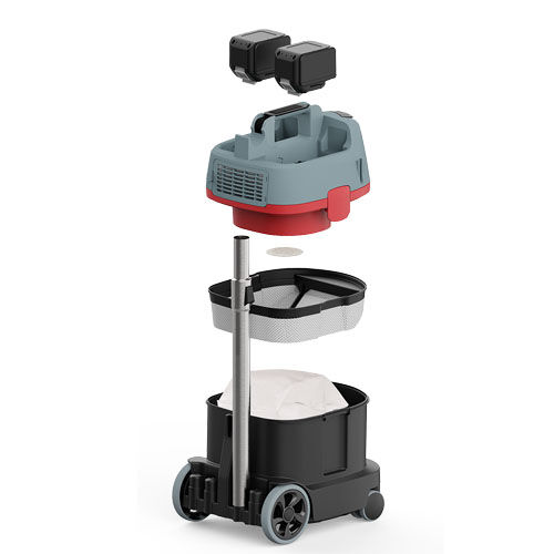 Die hochwertigen HEPA 13 Filtermedien garantieren jederzeit eine saubere Ausblasluft und eignen sich für Allergiker oder für die Reinigung von empfindlichen Bereichen wie Krankenhäuser, Pflegeheime oder Kindergärten. Das extra Filtertütenreservefach erspart im Notfall unnötige Laufwege und den Verlust wertvoller Arbeitszeit, sollte keine Ersatzfiltertüte griffbereit sein. Extra große gummierte Laufräder und Lenkrollen sorgen für hohe Agilität und Stabilität. Dank des integrierten, ausziehbaren Transportgurts können Sie den leichten, kompakten Sauger in beengten Räumen und Treppenhäusern einfach über der Schulter tragen. Rundum elastische Stoßkanten und eine durchgängige Gleitkufe sorgt für leichten Übergang an Türschwellen. Durch die zwei auf dem Motorkopf angebrachten Akkus entsteht ein niedriger Schwerpunkt, der die Kippanfälligkeit des Geräts erheblich reduziert.