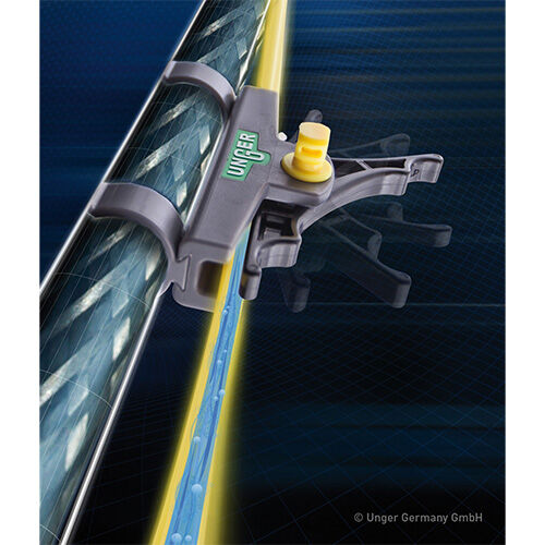 UNGER ErgoTec Ninja-Griff mit 30° oder 40° Arbeitswinkel Der ErgoTec NINJA Wischergriff von Unger wurde perfekt auf die menschliche Hand abgestimmt. Die hochwertige Anti-Rutsch-Gummibeschichtung sorgt für mehr Komfort und perfekte Handhabung – auch mit nassen Händen. Auf der Oberseite des Wischergriffes befindet sich ein Daumenbereich mit Wabenstruktur, mit dem Sie zusätzlichen Druck auf den Griff ausüben können. Guter Anpressdruck auf der Scheibe Der Kopf des ErgoTec Ninja Griff ist etwas schwerer als bei anderen Wischergriffen. Das hat den Effekt, dass ein besserer Anpressdruck auf der Glasscheibe ermöglicht wird.  Welche Kopfneigungsversion soll ich beim ErgoTec Ninja-Griff wählen? Der ErgoTec Ninja Griff ist in zwei Arbeitswinkeln (30° oder 40°) erhältlich. Die 40°-Version des Griffes eignet sich perfekt für die Glasreinigung mit der Teleskopstange.  Swivel-Funktion auf Knopfdruck Praktisch: mit dem innovatives Verriegelungsmechanismus am Griff können Sie den Schwenkkopf in Mittelstellung fixieren oder lösen. So bleibt der Fensterwischer in der gewünschten Position, wenn keine Swivel-Funktion erwünscht ist.  Grüner Knopf rein: Schwenkkopf ist verriegeltGrüner Knopf raus: Schwenkkopf ist frei, Swiveln ist möglich Vorteile ergonomischer 2-Komponenten-Griff aus rutschfestem Material Swiveln möglich: perfekt für die Glasreinigung mit der Stange Griff kann stufenlos an der Wischerschiene platziert werden sicher: TriLoc-System für sicheren Halt der Wischerschiene Griff in 30°- oder 40°- Kopfneigung erhältlich Der ErgoTec Ninja Griff ist kombinierbar mit: ErgoTec Ninja Alu-Schiene (JAC200-000) ErgoTec Ninja Bucket On a Belt (JBB010) OptiLoc Telestkopstange, 2-teilig (JEZ120-000) OptiLoc Teleskopstange 3-teilig (JED180-000) TelePlus Teleskopstange 125 System (JTZ250-000) TelePlus Teleskopstange 200 System (JTZ400-000) Produkteigenschaften   Maße (L x B x H) Kopfneigung   Gewicht   Art.Nr.: JEN300 185 x 90 x 47 mm  30° 0,16 kg Art.Nr.: JEN000   185 x 90 x 47 mm  40° 0,13 kg
