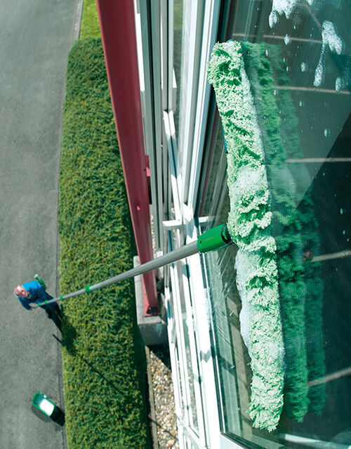 Mikrofaser-Bezug mit Schmutzpad und Klettverschluss mit starker Reinigungskraft. Der Wischbezug für die Glasreinigung zeichnet sich durch hohe Wasseraufnahme aus: er kann bis zum 6-fachen seines Eigengewichts aufnehmen.